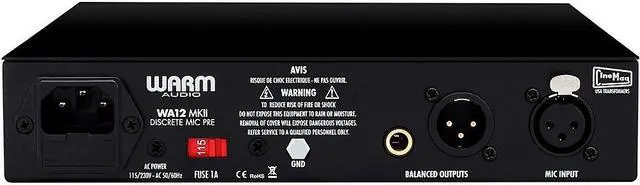 DIY crowd: Because the unit was designed around the X731 opamp, the pre can accept any discrete opamp on the market that conforms to the 16V, 2520 pinout standard. In addition to the opamps, the WA12 MkII employs CineMag USA transformers, as well as other components that allow it to compete with units far more costly. This preamp offers XLR and 1/4 connections for mic level, line level, or Hi-Z instruments. You'll also have your choice of XLR or 1/4 TRS outputs. A pad switch is on hand, as are a polarity switch and a button to supply 48V phantom power to condenser mics. A tone control lets you change the impedance from 600 to 150 ohms, which will have an effect on the sound. Key Features at a Glance Utilizes premium grade input and output USA CineMag transformers 71 dB of gain, fully discrete signal path Can be replaced with other 6-pin 2520-foot print opamps for varying tone/flavor Tone button switches the input impedance from 600 ohms to 150 ohms, changing the tone of both the microphone and Hi-Z inputs 2-megohm Hi-Z input on front panel, sends instrument signal through entire circuit including both Cinemag transformers and the discrete opamp Suitable for guitars, bass, keyboards, and other instruments that have a 1/4 output jack Output attenuation control (after the CineMag output transformer) allows for driving the preamp and transformers into saturation LED meter gain indication External power plug