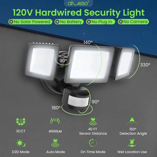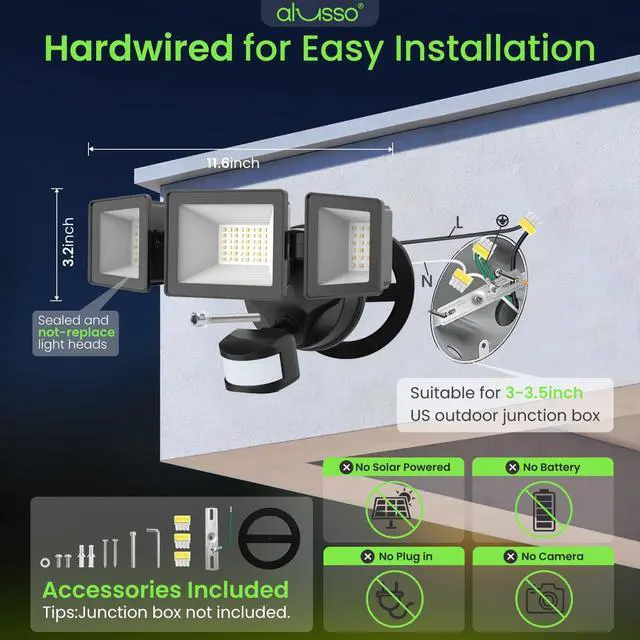 ALUSSO Outdoor Lights 3CCT 3000K/4000K/6500K Hardwired ETL Listed