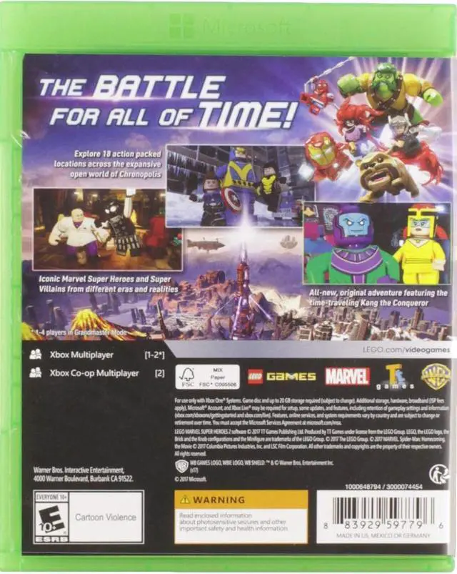 LEGO Marvel Super Heroes 2 is an all-new, original epic adventure and sequel to the smash hit, LEGO Marvel Super Heroes. Bringing together iconic Marvel Super Heroes and Super Villains from different eras and realities, this original branching storyline transports players into a cosmic battle across a myriad of Marvel locations ripped from time and space into the incredible open hub world of Chronopolis. Packed with signature LEGO humor for fans of all ages, gamers will go head-to-head with the time-travelling Kang the Conqueror through Ancient Egypt, The Old West, Sakaar, New York City in the year 2099, Xandar and many other imaginative settings in this fun-filled journey spanning the Marvel Universe.
