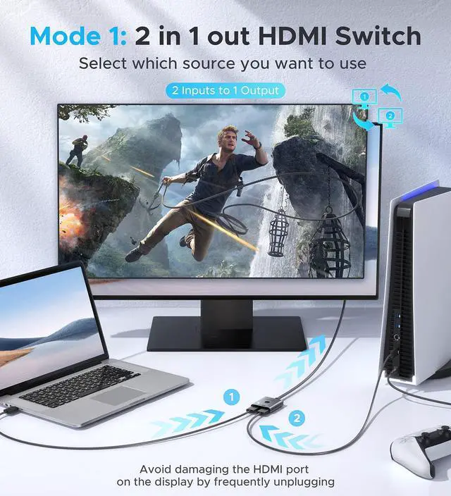 ![Alt view image 4 of 7 - HDMI Switch 2 in 1 Out 4K@60Hz, [with 3.3ft Fixed Braided HDMI Cable, Aluminum Case, 2K@144Hz, HDCP 2.2] Bidirectional 2x1 Switcher Splitter Compatible for PS5/4, Xbox, Roku, FireStick, Switch](https://c1.neweggimages.com/productimage/nb640/C5TPD2603110SKWY275.jpg)