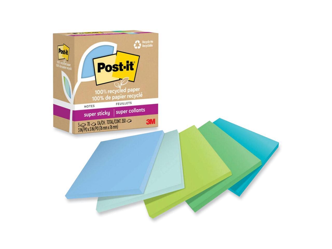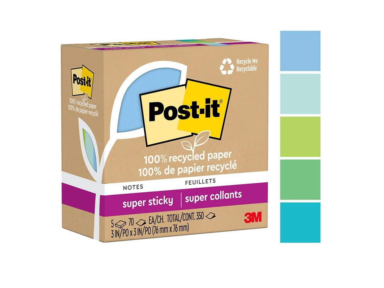 Post-it Recycled Super Sticky Notes 3" x 3" Oasis Collection 70 Sheet/Pad 5 Pads/Pack (654R-5SST)