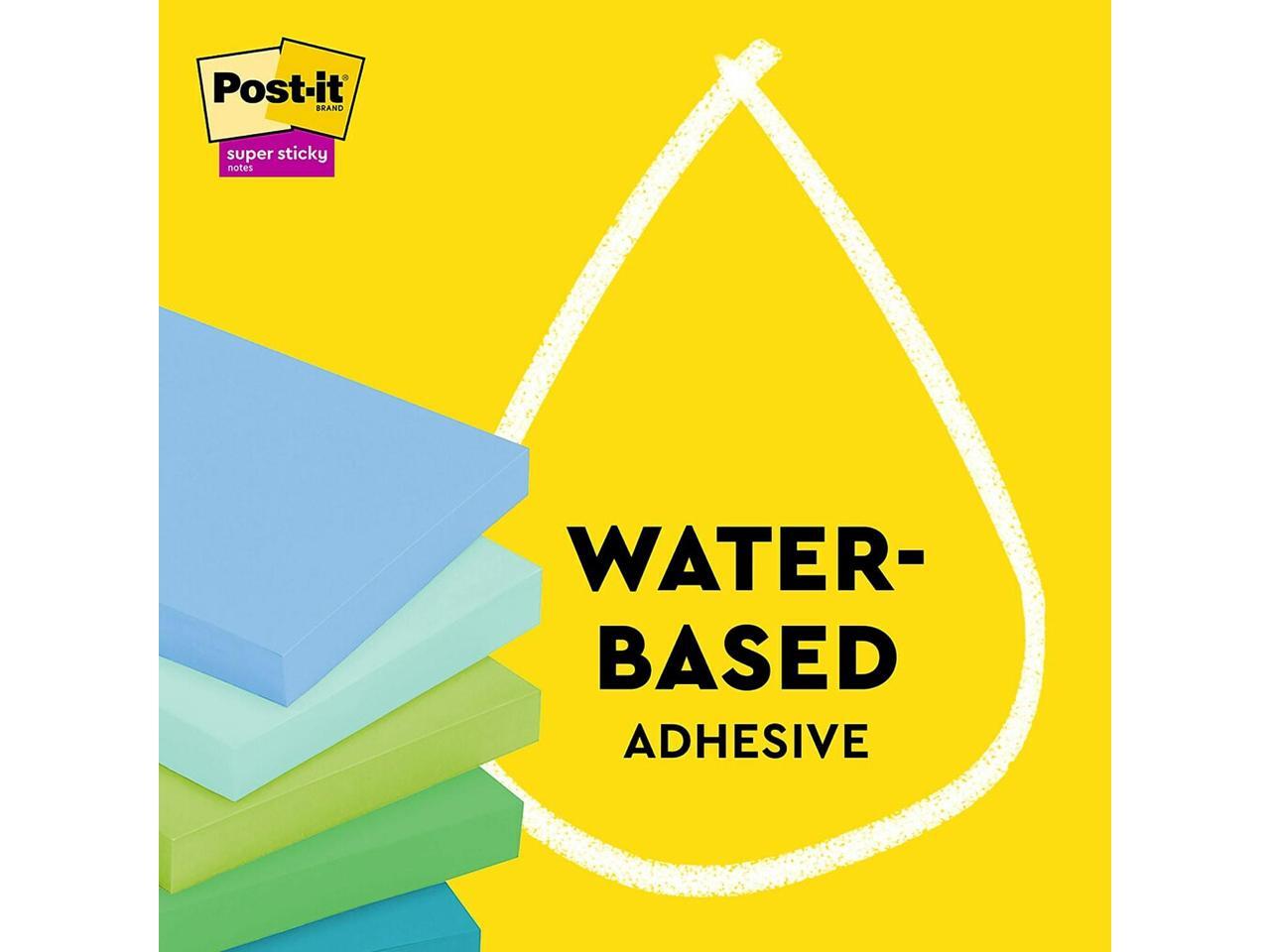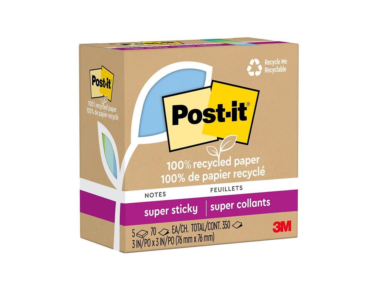 - EXPERIENCE THE POWER OF 2X STICKINESS: Post-it Super Sticky Notes offer twice the sticking power of basic sticky notes using 100% recycled paper. EYE-CATCHING COLORS: Vibrant and colorful reminders are more likely to grab attention and be noticed. SUSTAINABILITY: Post-it Super Sticky Notes can be recycled.