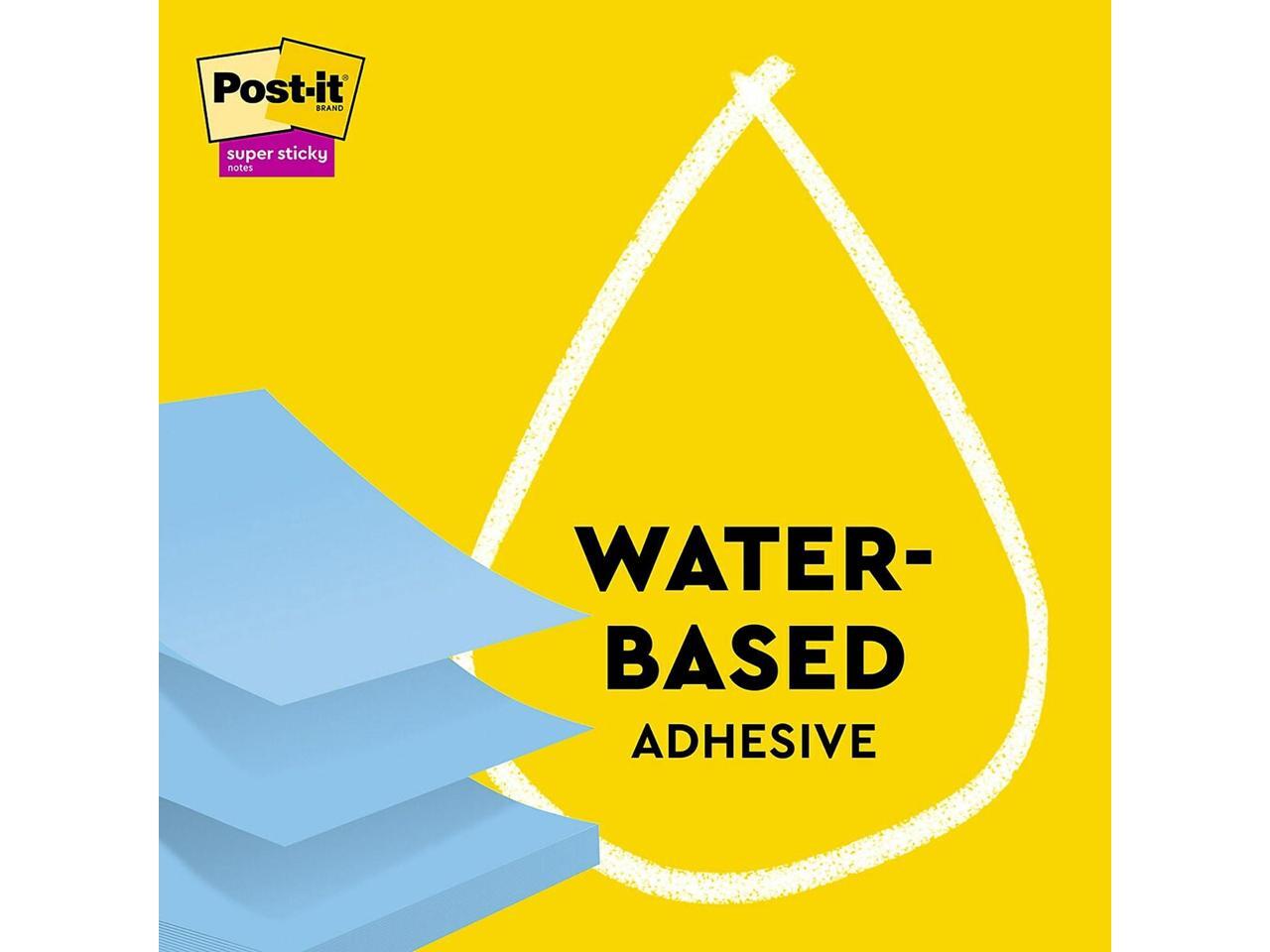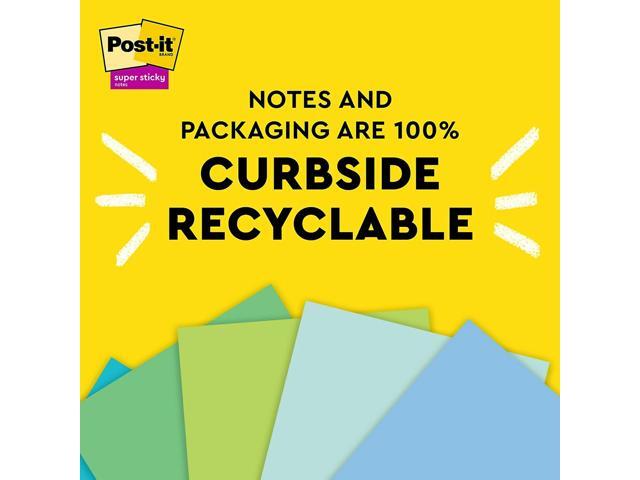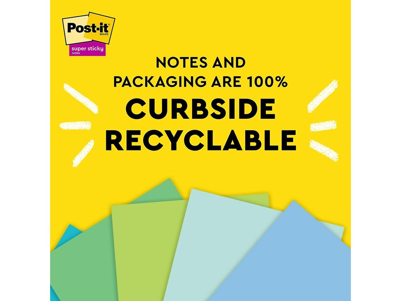 - EXPERIENCE THE POWER OF 2X STICKINESS: Post-it Super Sticky Notes offer twice the sticking power of basic sticky notes using 100% recycled paper. EYE-CATCHING COLORS: Vibrant and colorful reminders are more likely to grab attention and be noticed. SUSTAINABILITY: Post-it Super Sticky Notes can be recycled.