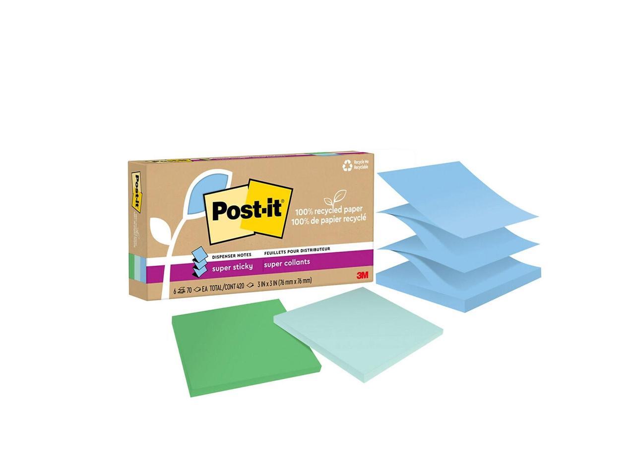 Post-it Recycled Super Sticky Pop-up Notes 3" x 3" Oasis Collection 70 Sheet/Pad 6 Pads/Pack (R330R-6SST)