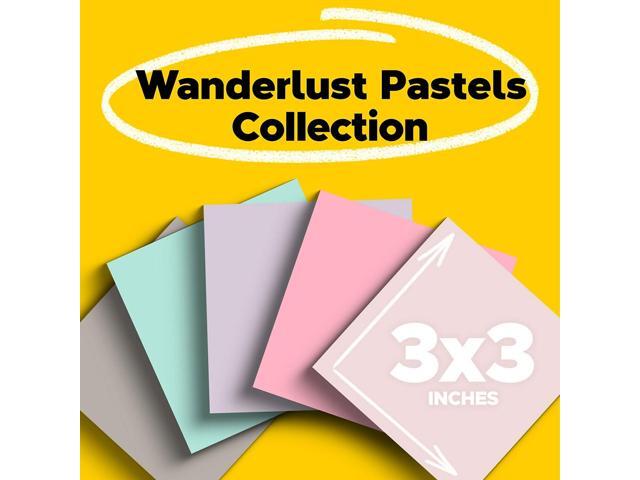 Post-it Recycled Super Sticky Notes 3" x 3" Wanderlust Pastels Collection 70 Sheet/Pad 5 Pads/Pack (654R-5SSNRP)