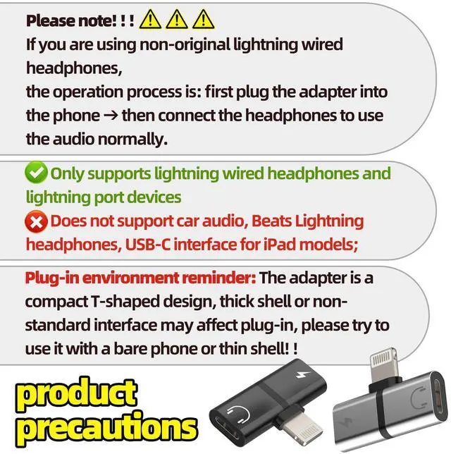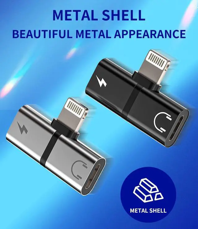 The 2-Pack Lightning Headphone Adapter 2-in-1 offers a versatile and convenient solution for users who need to charge their for iPhone or for iPad while listening to music, making calls, or using their earphones. With a dedicated Lightning audio port and Lightning charging port, this adapter ensures you never have to compromise between power and sound quality.Designed with a premium aluminum alloy casing, the adapter is durable, wear-resistant, and anti-interference, providing a reliable connection. Its T-shaped wireless design prevents messy cables, keeping your gaming or movie experience free from distractions.for Apple MFi certified, this adapter guarantees full compatibility with all Lightning devices, including for iPhone 14/13/12/11/X/8/7/SE Pro Max and for iPad. It delivers outstanding audio performance, supporting up to 24bit 192kHz lossless sound, ensuring your earphones retain their original audio quality. Ideal for users who want seamless multitasking without compromising on performance.