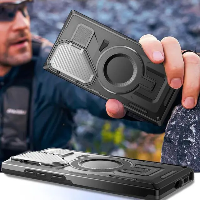 Camera Stand Case for Galaxy S23 Ultra / S22 Ultra, [Compatible with MagSafe][Lens Cover] 2024 Version Military Grade Protective Soft Case for Samsung Galaxy S23 Ultra / S22 Ultra 6.8" Men Women, Black