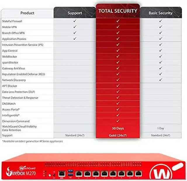 MAIN OVERVIEW FEATURES: Firewall Protection Supported: WebBlocker,Application Control,Intrusion Prevention,Anti-spam,Reputation Enabled Defense,Cyber Assault Protection,Gateway AntivirusTotal Number of Ports: 8USB: YesNumber of Network (RJ-45) Ports: 8Ethernet Technology: Gigabit EthernetNetwork Standard: 1000Base-TManageable: YesLimited Warranty: 1 YearSupport/Service Duration: 3 Year Basic Security Suite