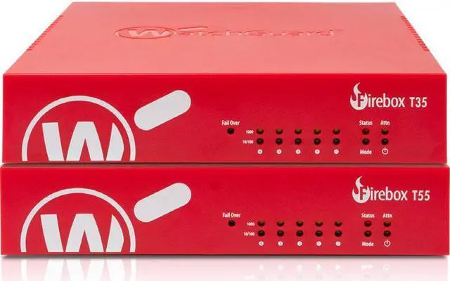 Trade in another manufacturer's firewall and receive the Firebox T55 with Total Security Suite at a great price. WatchGuard Firebox T55 delivers enterprise-level security at firewall speeds up to 990 Mbps. Firebox T-55 includes five 1-Gigabit Ethernet ports and one PoE+ port to power peripheral devices such as wireless access points or security cameras. Use it as a stand-alone security solution or centrally manage it from corporate headquarters, with RapidDeploy technology to make remote deployment easy. Flexible management tools give administrators access to security capabilities from an intuitive console, scriptable CLI, and web UI. WatchGuard Dimension, which provides deep, real-time visibility into network activity and security events, is included at no additional cost. Product Type: Network Security/Firewall Appliance Firewall Protection Supported: Network Protection Firewall Protection Supported: VoIP Attack Firewall Protection Supported: Virus Protection Firewall Protection Supported: Trojan Horse Firewall Protection Supported: Malware Protection Firewall Protection Supported: Secure IPsec VPN Connectivity Firewall Protection Supported: Firewall Authentication Firewall Protection Supported: Anti-phishing Firewall Protection Supported: URL Filtering Firewall Protection Supported: Proxy Blocking Firewall Protection Supported: Stateful Packet Filtering Firewall Protection Supported: Blended Threat Prevention Firewall Protection Supported: Packet Inspection Firewall Protection Supported: Antivirus Firewall Protection Supported: Denial of Service (DoS) Product Type: Network Security/Firewall Appliance Firewall Protection Supported: Network Protection Firewall Protection Supported: VoIP Attack Firewall Protection Supported: Virus Protection Firewall Protection Supported: Trojan Horse Firewall Protection Supported: Malware Protection Firewall Protection Supported: Secure IPsec VPN Connectivity Firewall Protection Supported: Firewall Authentication Firewall Protection Supported: Anti-phishing Firewall Protection Supported: URL Filtering Firewall Protection Supported: Proxy Blocking Firewall Protection Supported: Stateful Packet Filtering Firewall Protection Supported: Blended Threat Prevention Firewall Protection Supported: Packet Inspection Firewall Protection Supported: Antivirus Firewall Protection Supported: Denial of Service (DoS) Manufacturer Part Number: WGT55693-US Limited Warranty: 1 Year Manufacturer: WatchGuard Technologies, Inc Product Model: T55 Product Name: Firebox T55 Network Security/Firewall Appliance Product Line: Firebox Brand Name: WatchGuard Product Series: T Brand Name: WatchGuard Height: 1.8 Width: 8 Depth: 8.5 Ethernet Technology: Gigabit Ethernet Product Family: Firebox T Total Number of Ports: 5 Manageable: Yes Network Standard: 10/100/1000Base-T Environmentally Friendly: Yes Environmental Certification: RoHS Environmental Certification: WEEE Environmental Certification: REACH Encryption Standard: 3DES Encryption Standard: AES (256-bit) Encryption Standard: AES (128-bit) Encryption Standard: SHA-2 Encryption Standard: DES Encryption Standard: RSA Ethernet Technology: Gigabit Ethernet USB: Yes Number of Network (RJ-45) Ports: 5 Number of PoE+ (RJ-45) Ports: 1 Total Number of Ports: 5 PoE (RJ-45) Port: Yes Support/Service Duration: 3 Year Total Security Suite License Required: Reputation Enabled Defense (RED) License Required: Intrusion Prevention License Required: Gateway Antivirus License Required: Anti-spam License Required: WebBlocker License Required: Application Control License Required: Threat Protection License Required: Data Loss Prevention License Required: APT Blocker