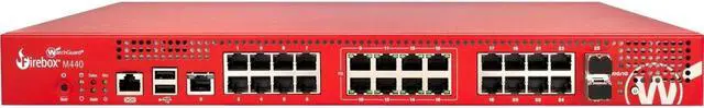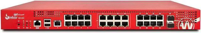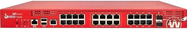 The Firebox M440 incorporates the same strong security, high performance and flexible management tools that distinguish our other UTM and NGFW solutions, but this model delivers especially robust port density with twenty-five 1Gb Ethernet ports and two 10 Gb SFP+ (fiber) ports. Eight of the ports provide Power over Ethernet (PoE), which is ideal for WatchGuard Access Points.