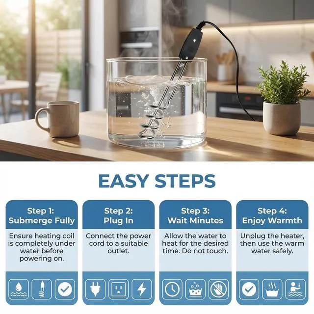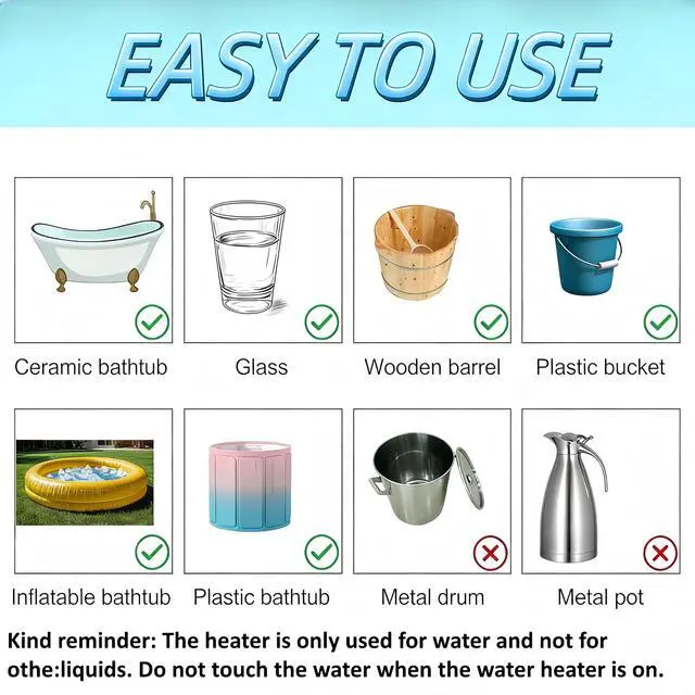 simply immerse it fully into water, and it will quickly heat up your Ceramics Cups,water bucket or bathtub. As a immersion water heater, it ensures energy-saving while providing stable heating, making it an ideal water heater for bathtub and bucket water heater for every household.