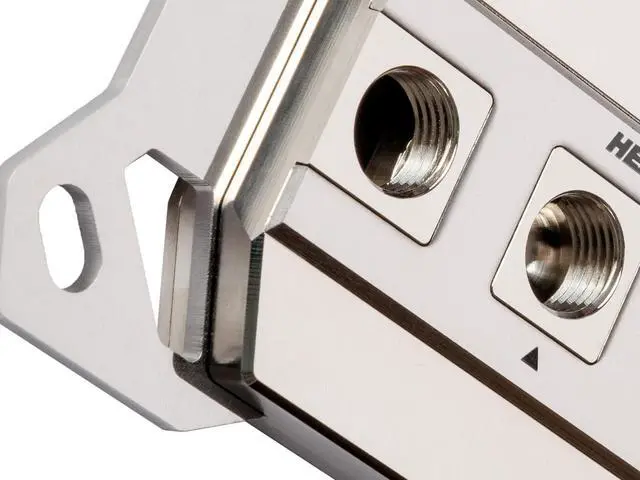 Material: nickel-plated copper (top), nickel-plated copper (coldplate), polished stainless steel (brackets, inlay), nickel-plated brass ( Easy-Mount-System)
