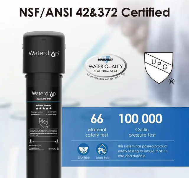 [Fast flow rate & multiple uses] The tested full flow rate of this undersink water filtration system is 1.0 gpm at 60 psi. The fast and stable water supply provides pure and fresh water that tastes like spring water. Developed for household and commercial use, Waterdrop Undersink Water Filtration System can be installed in your kitchen, RV, or office to meet your daily water needs.