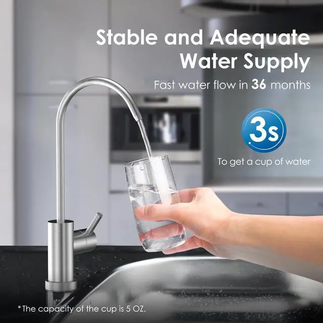 [Money-saving] The undersink water filtration system works without electricity and doesnt produce waste water, thereby reducing the amount that you spend on electricity and water. On average, by spending only $10 per year (3 cents per day) for the undersink water filter replacement, you and your family can enjoy safe and clean water.