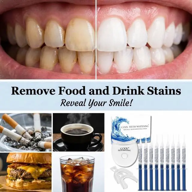 Using our professional strength peroxide gel, you will remove soda, food, coffee, and tea stains.