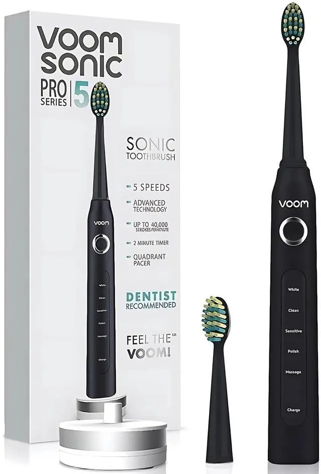 Discover the Voom Sonic difference. Designed for those who demand both performance and personality, our Voom Sonic Pro?5 combines salon-level cleaning power with everyday ease. It delivers 40,000 sonic vibrations per minute to tackle plaque, stains, and debris—even in hard-to-reach areas—while remaining gentle on enamel and gums.