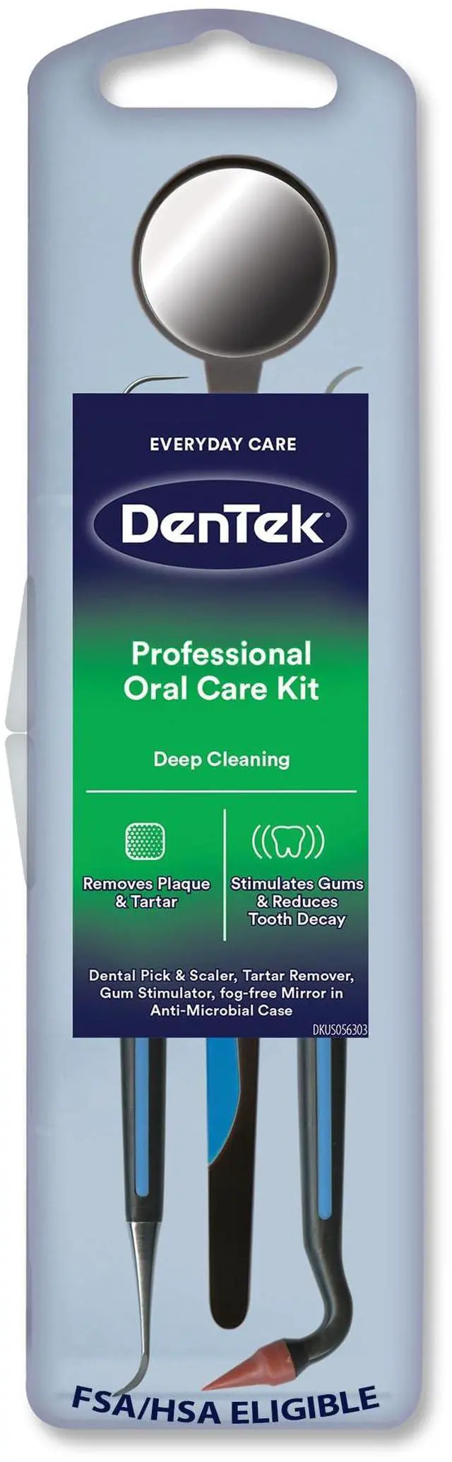 Included in Package Dental Pick & Scaler, Tartar remover & Gum Stimulator, Fog-Free Mirror + Case | Included in Package 6 Patches | Included in Package Benzocaine (20%), 50 Disposable Applicators, Applicator Handle, Carrying Case |