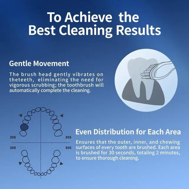 The built-in 2-minute timer and 30-second zone change reminder allow you to maintain a standard brushing time that is evenly distributed to each zone.