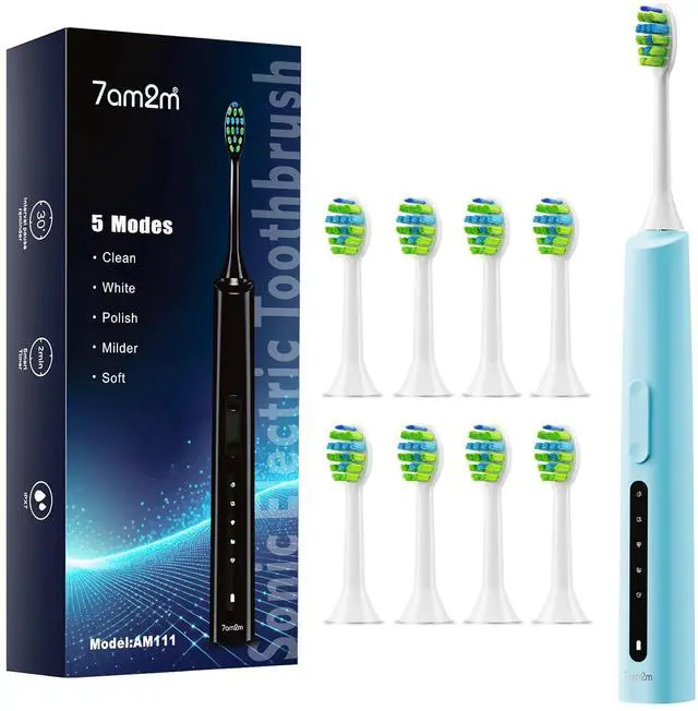 Sonic Electric Toothbrush with 8 Brush Heads for Adults and Kids, High Power Rechargeable Toothbrushes, 5 Modes with 2 Minutes Built in Smart Timer, One Charge for 60 Days (Blue)