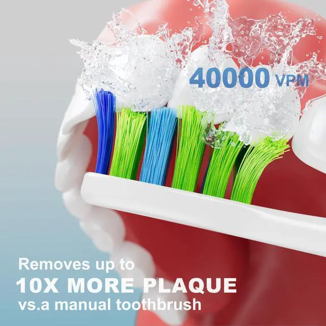Superior Cleaning Power - Our electric toothbrush delivers an impressive 40,000 VPM high-frequency, providing a deep and thorough clean that is 5 times more effective than low-frequency electric toothbrushes for adults. Say goodbye to 99.99% of plaque and surface stains for a healthier, brighter smile.