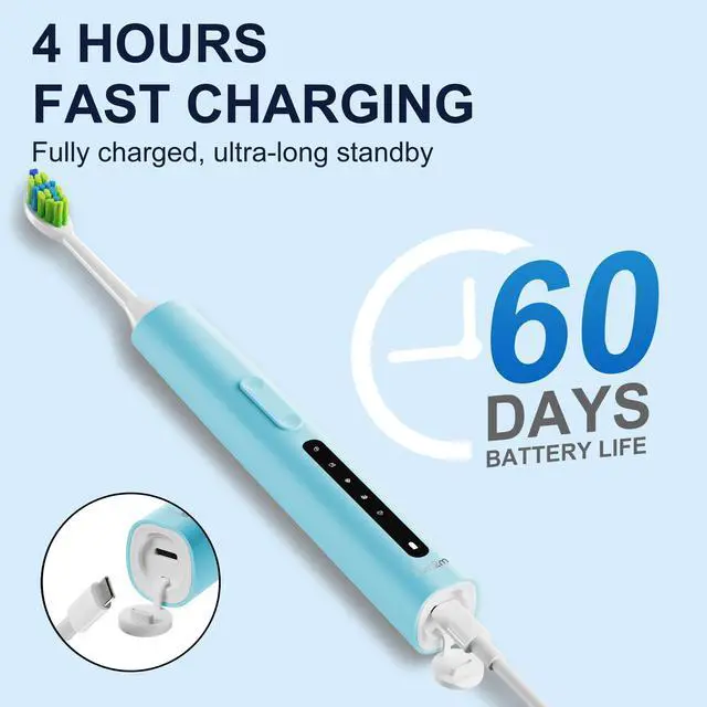 Fast Charge & IPX7 Waterproof- Electric toothbrushes for adults charges with fast speed by USB cable (adapter sold separately), all while delivering long-lasting cleaning action between charges. Weight just 55g. IPX7 waterproof for easy water rinsing after each use.