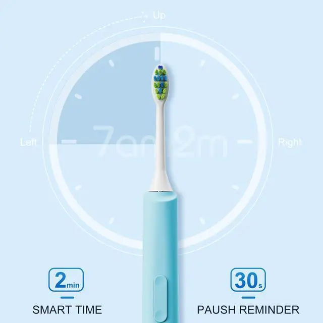 Smart Vibrating Notification Timer - Built in smart timer control, 30 seconds interval reminding you to move to the next quadrant of your mouth, and totally in 2 minutes(4 quadrants), which is highly recommended by professional dentists, as a correct brushing way.