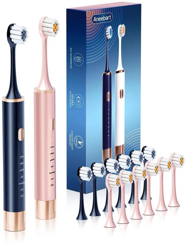 Our set comes with two electric toothbrushes and 12 replacement brush heads.