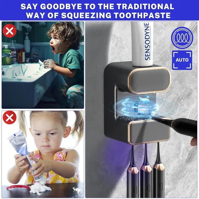 Wall Mounted Electric Toothpaste Dispenser with 3 Toothbrush Slots