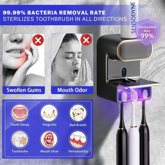 Warm Tip: When the toothpaste dispenser senses that you are distributing toothpaste, the purple light at the toothbrush holder will light up, so the purple light cannot work alone.
