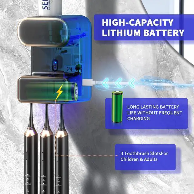Equipped with an upgraded lithium battery, the battery without frequent charging. Recommended that you turn off the toothpaste dispenser when you are done using it, saving electricity and helping to extend the life of the battery at the same time. The input voltage should be less than 3.7V.