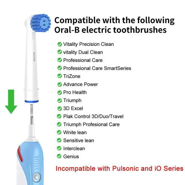 High Compatibility,Compatible with the Following Oral B Electric Toothbrushes (Except Pulsonic and iO Series)