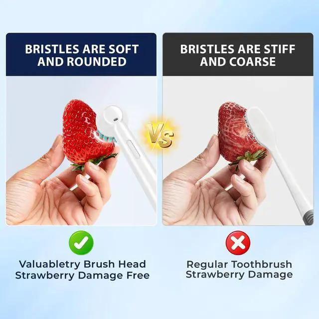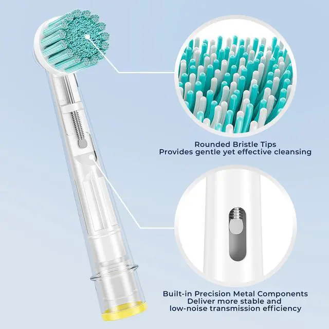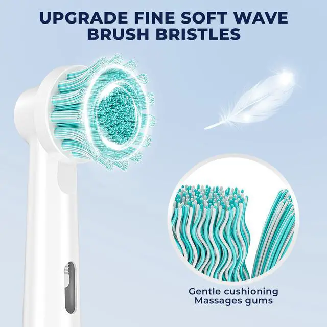 This brush head features ultra-fine bristles with a curved buffer design at the center, delivering an exceptionally gentle cleaning experience for sensitive gums.
