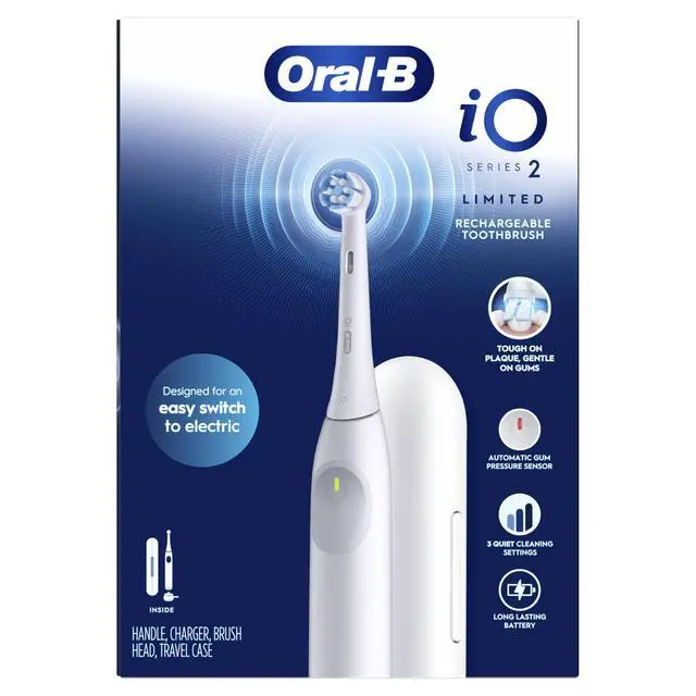 The iO Series 2 Limited combines powerful, but gentle micro vibrations with 's dentist inspired round brush head to deliver 100% cleaner teeth versus a regular manual toothbrush. So advanced yet so simple, that you will be able to achieve that dentist clean feeling in just 1 touch of a button.
