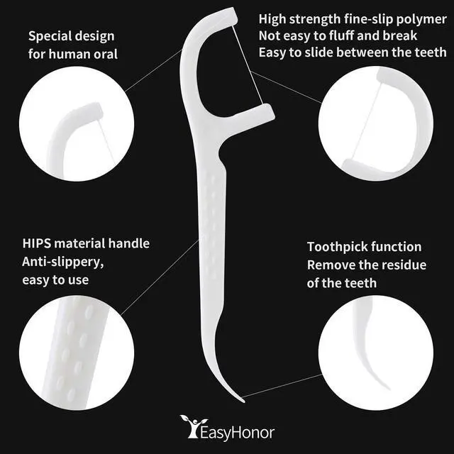 EasyHonor's thread is made of polymer material, the thread is the high strength and smooth, the floss is easy to slide between the teeth, and they are not easy to break.