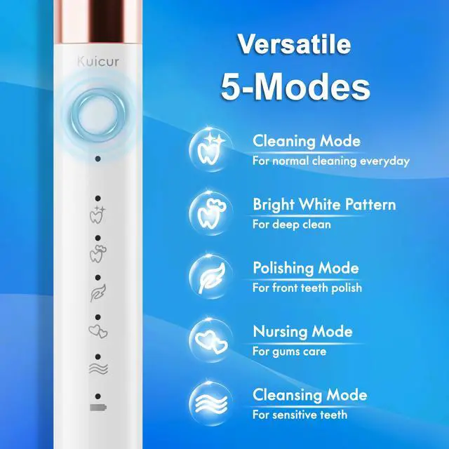 Engineered with 45% greater bristle density, this electric toothbrush's durable bristles effectively remove even the most stubborn tooth stains and plaque, delivering a deep, professional-grade clean that leaves your teeth sparkling.