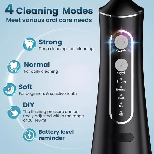 | Special Feature | Portable, Multiple Pressure Settings, Rechargeable, Multiple Operation Modes, Multiple Tips, 300ML Water Tank, Non-Slip Grip, Noiseless |