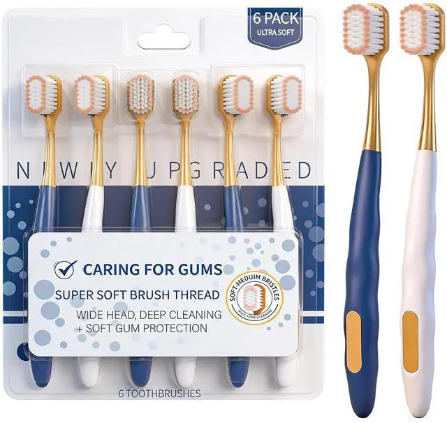 Adult Wide Head Soft Hair Toothbrush, Manual Toothbrush, Excellent Cleaning Effect for Large Head, Ultra Soft Brush Thread Can Gum-Friendly (6 Pack)