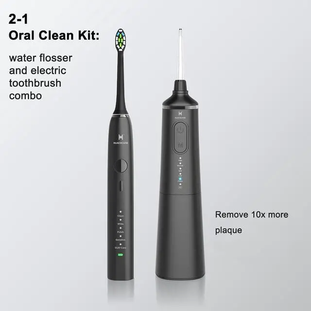 Professional-Grade Cleaning with Enhanced PerformanceExperience the ultimate upgrade with 5 customizable water flossing modes (High/Normal/Soft/Low/Pulse) two more than standard models for personalized gum care. The advanced sonic toothbrush generates 50,000 micro-vibrations per minute (30% more powerful than basic versions) for clinically proven plaque removal. Featuring premium matte-finish housing and medical-grade nozzles, this pro kit delivers tangible performance improvements that justify the $20 premium investment.