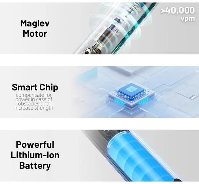 Using a high-frequency vibration motor that vibrates 42,000 times per minute, it can more effectively remove plaque from the surface of teeth.