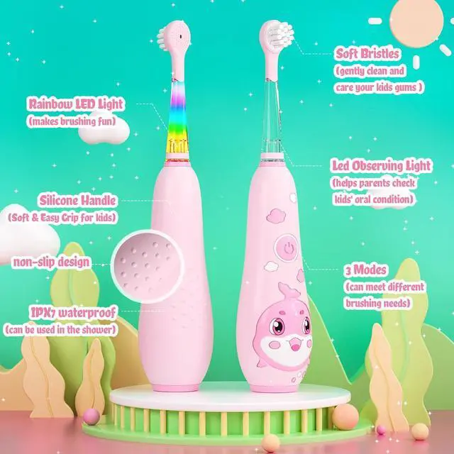 The kids electric toothbrushes built-in 2 mins smart timer to help kids develop a good brushing habit.