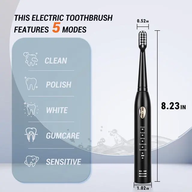 Each sonic electric toothbrush includes 4 Dupont nylon brush heads for a gentle brushing experience. It provides 6 personalized cleaning modes to suit different oral care preferences, and features IPX7 waterproof rating along with extended battery life (up to 30 days per full charge) for everyday convenience and reliable use. Offered in several package options, it is a great choice for family use or as business gifts, blending practical performance with versatile appeal.