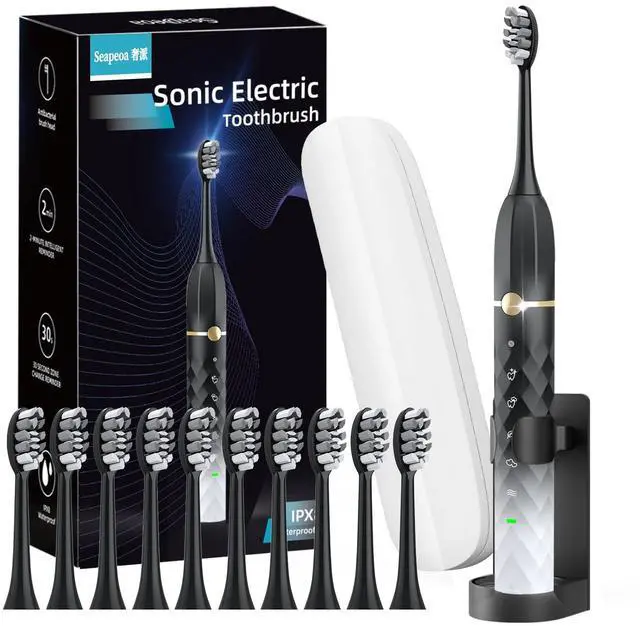 Experience superior cleaning and convenience with this advanced electric toothbrush set. Featuring sonic vibration technology, a long-lasting battery, and a comprehensive kit with replacement brush heads and a travel case, it's the perfect choice for maintaining optimal oral hygiene.