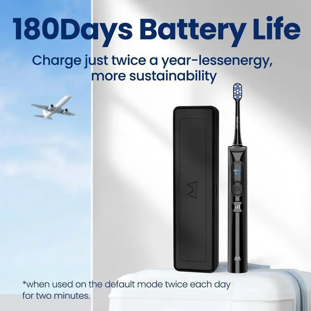 Battery Life:Single charge lasts up to 180 days (used twice a day for two minutes each time.)