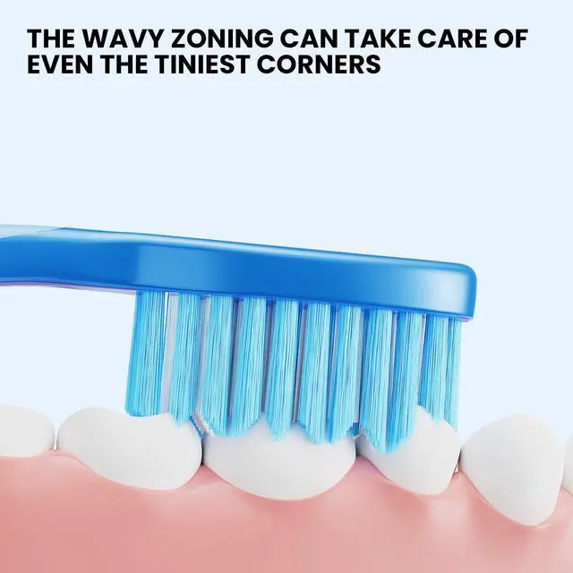 Wavy Bristle Design for Better Reach The wavy shape helps the bristles clean more effectively along the gum line and between teeth than flat brushes.