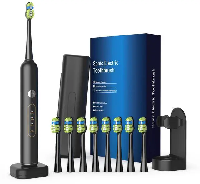 Package Contains: Travel sonic toothbrush set comes with 1 electric toothbrush, 8 brush heads, 1 travel case, 1 toothbrush holder, 1 charging base, 1 instruction manual. NOTE: If you have any issues, please let us know anytime, we'd provide with prompt and friendly service