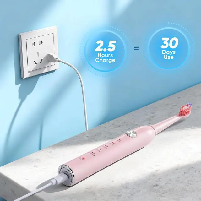 Sonic Electric Toothbrush for Adults & Kids - 5 High-Performance Modes, 8 Replacement Heads, 2.5-Hour Fast Charge, Built-in Smart 2-Minute Timer, IPX7 Waterproof, 35 Day Battery Life - Pink