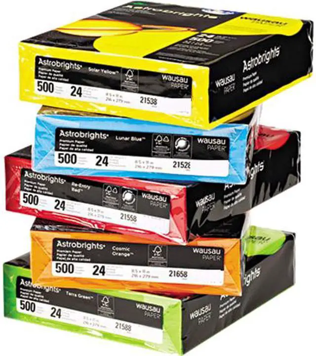Use this brightly colored paper to create attention-getting notices, flyers, announcements, bulletins and more. Acid-free, lignin-free paper is compatible with laser and inkjet printers, copiers and offset printers. Colors include Solar Yellow, Terra Green, Lunar Blue, Re-entry Red and Cosmic Orange. 24 lb. weight.