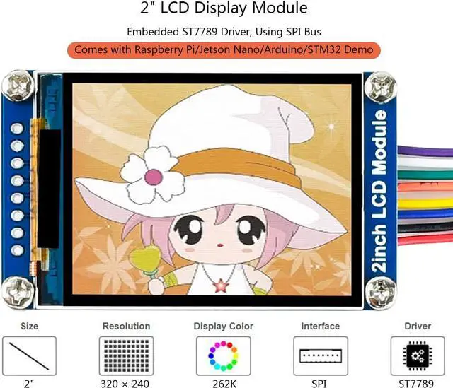 2inch LCD Display Module, IPS Screen, 240×320 Resolution, SPI Interface,requires minimum GPIO for controlling.
