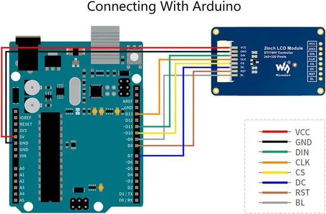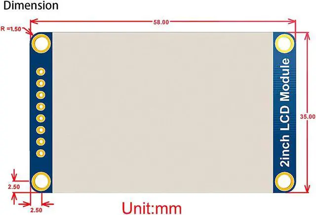 Operating voltage: 3.3V/5V. Interface: SPI. LCD type: IPS. Controller: ST7789V. Resolution: 240(V) x 320(H)RGB.