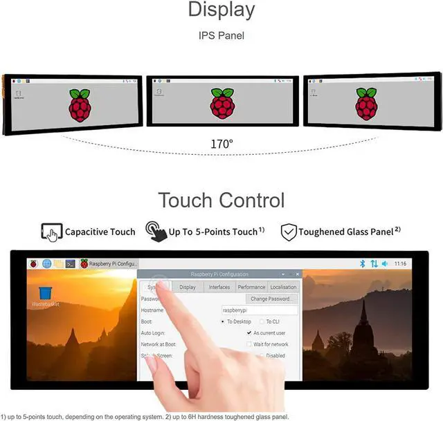 Supports all versions of Raspberry Pi. Supports Raspbian, 5-points touch, driver free. Supports Ubuntu / Kali / WIN10 IoT, single point touch, driver free. Supports Retropie, driver free.
